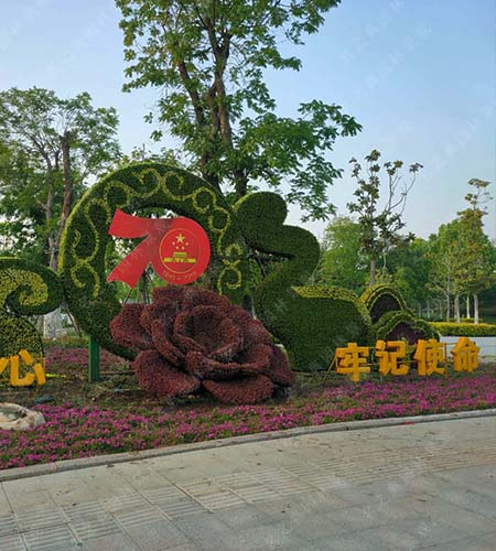 路边绿雕“不忘初心”
